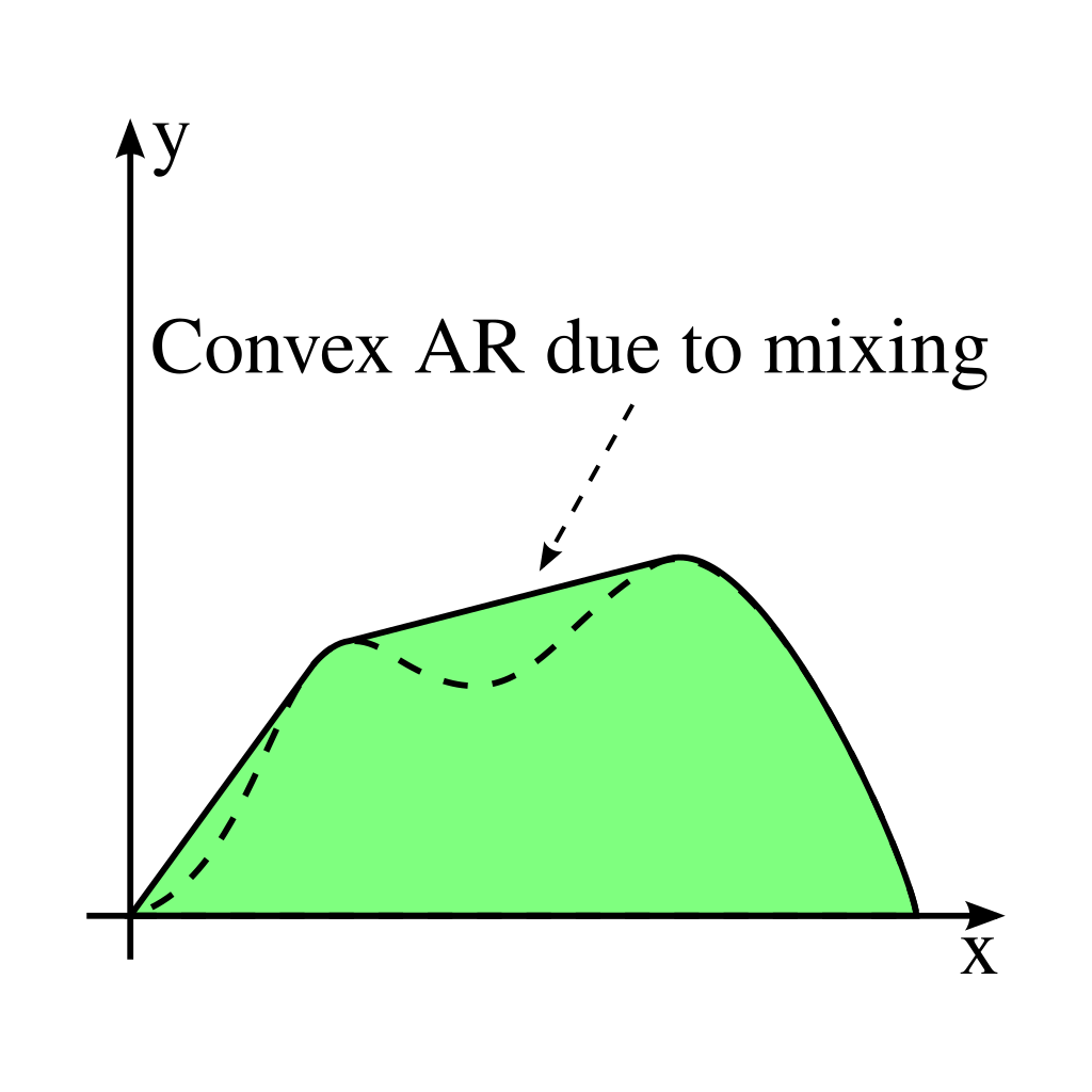 The AR must be convex. If a region is not initially convex, it can always be made convex via the physical process of mixing. Recall that the physical interpretation of the convex hull is that of mixing, the the points belonging to the convex hull represent the unique points that may be used to generate all other points in the region via mixing.