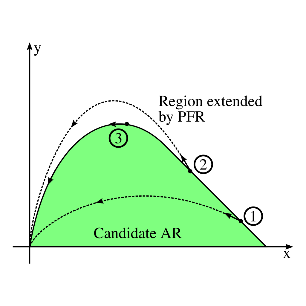 Since all rate vectors on a PFR trajectory are tangent to the trajectory, we also know that there is no possibility of extending the region further with additional PFRs.