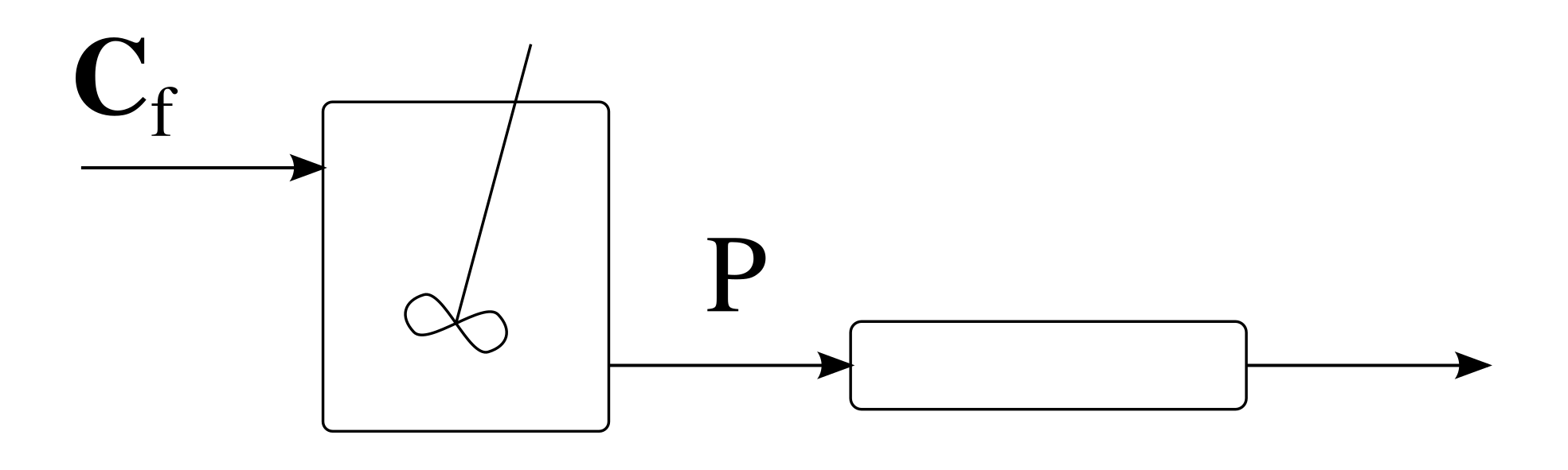 Let us now try the same approach using a CSTR from the feed. In doing so, we are assuming that a CSTR is available to use that we can feed material equal to Cf to the reactor.